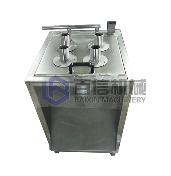 在使用山藥切片機前將機器放置在干燥、通風的水平地面上,確保機器工作平穩(wěn)、可靠。使用前對各部位進行檢查,緊固件是否在運輸途中松動,開關及電源線是否因運輸而破損,料斗或料盒內是否有異物。檢查電源電壓是否與本機使用電壓相符合。將電源軟線伸長,把帶有接地符號的黃綠線芯可靠接地,把其余三條線芯(配置單相電動機時為兩條)分別接到開啟式負荷開關(閘刀開關)斷開時的引出端子上。工作前打開前門,用手撥動轉盤觀察是否有磕碰刀具的現(xiàn)象,如果有則將轉盤上的緊定螺栓松開,稍微向外移動轉盤,然后緊固緊定螺栓。閉合開啟式負荷開關,啟動開啟按鈕,視切刀運轉方向是否正確,從入料口觀察逆時針轉動為正確,否則調整電源線,待切刀運轉方向正確后空載試運轉,各部位無異常方可試機。正常工作前先試切,觀察所切蔬菜規(guī)格與要求是否一致,否則應調節(jié)(或更換)刀片與轉盤的高度,調整無誤后進行正常工作。切片的厚度由片刀與轉盤的間隙來決定,通過調整片刀來實現(xiàn)尺寸變化。